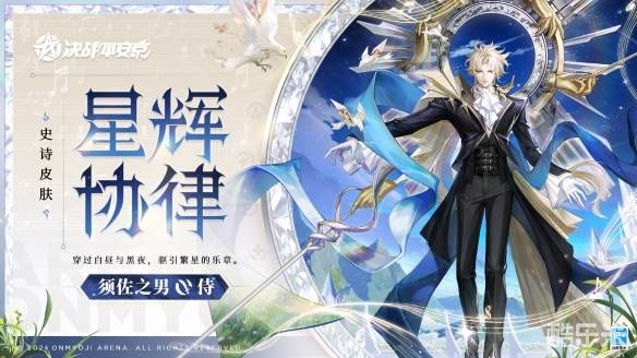 繁星音乐盛典拉开帷幕,聚光灯之下正是正装革履惊才风逸的须佐之男。神明将春天与诗意编织成希望之声,让细微星尘不再流浪,为寂静暗夜带来明光。由乐谱折成的白鸽领受神的旨意,指引彷徨群星朝温暖的晨曦飞去。5月17日维护后,须佐之男全新史诗皮肤「星辉协律」将上架服装铺开放购买,售价86皮肤券,首周享限时8.8折优惠。