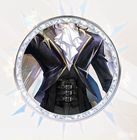 盛典的主角剑眉星目玉质金相,身着精致剪裁的正装,内衬华贵优雅,飘带是浩瀚寰宇的幽蓝,点缀着璀璨星汉,唯有暗星光子的佩饰才配得上神明的位格。