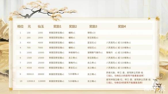 ②新服充值回馈升级:本次新服,在预约期间充值点数且消费的仙玉(包含购买预约礼包),额度将计入新服充值回馈活动中。