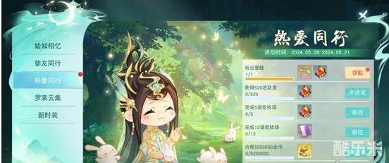5月8日-5月21日前往【热爱同行】活动页面,每日登录可获得玫瑰花苗等奖励。活动期间完成累计活跃度、竞技场、金币军资消耗等任务,即可领取四级宝石袋、元魂通天·启等热爱好礼!