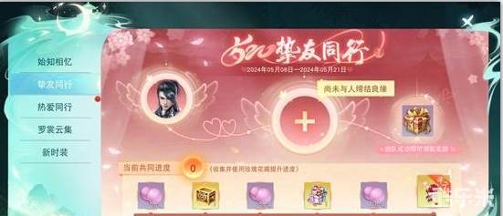 5月8日-5月21日前往【挚友同行】活动页面,与任一好友完成挚友关系绑定可领取挚友同行宝箱奖励。活动期间使用玫瑰花瓣可共同提升积分进度,达到指定进度可领取粉色恋曲永久背饰、异兽内丹宝盒·金、告白气球等奖励。若选择与婉灵达成挚友同行关系并独自完成全部进度,可额外获得50%的积分补偿。