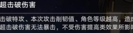 超击破特性:值得注意的是,超击破伤害不受角色的攻击力、增伤效果和双暴属性的影响。它的伤害值主要取决于角色的等级、技能的削韧值、击破特攻加成、超击破独立增伤、易伤效果、防御抗性以及减伤效果。