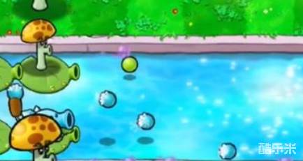 5、在第五列放置几个冰瓜大喷菇,接着在水池放两个火炬坚果。
