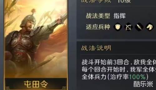 根据小编所了解的信息,在游戏中它作为一名橙色的高级武将,主要是效忠于魏国阵营,此外他擅长指挥枪兵,主要优势在于高智力属性,作为一名出色的战场指挥官,他拥有特有的战法“屯田令”,这是典型的指挥型技能,能在战斗中减少全体受到的伤害,并逐回合提升队友的恢复效果,这个恢复效果还能累积,随着队伍造成的伤害增加,回复效果越好。