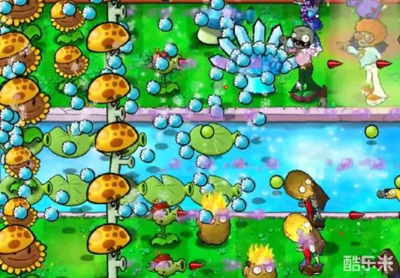 6、其中使用雪花寒冰菇就能攻击到全部方向的僵尸。