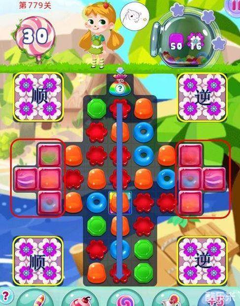 本关靠着糖果袋不停地输出特效和超级糖果,要全灭四叶花并不困难,但是要收集齐紧随其后出现的紫色糖果并不容易,总结两点1、四叶花的消除一定要快,这样紫色糖果出来才会快。2、紫色糖果的收集只能依靠特效加成后马上引爆特效收集掉才能保证效率。最后推荐本关加持古屋特效后冲关(特效生成的爆竹会帮忙收集四叶花和紫色糖果,对于过关是有帮助的)。