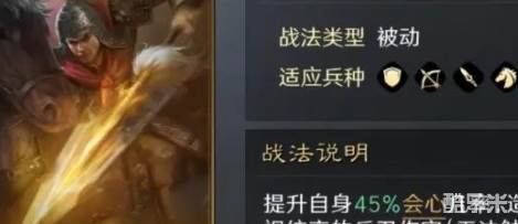 自带战法方面主要就是纵马横枪,作为一种被动战法而存在,能提升自身的会心概率,每当造成会心伤害后,马超可以对目标再次造成无视统率的额外伤害,如果目标身上本身就有负面状态,那么这次额外伤害还会得到增加。