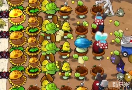 3、在中间一列补充玉米卷香蒲,在最右侧提前种植几个阳光土豆雷。