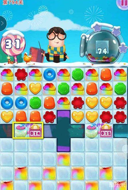 宾果消消乐794关主要目标是获得74个水晶糖。我们知道同色系糖果的消除会获得糖果下面的水晶糖,将水晶糖上面的糖果消除两次后就可以得到水晶糖了。而爆米花从最开始到完全爆裂需要三次,每个爆米花的右下角会有标明的数字,数字到3即会爆开。下面我们一起来看一下宾果消消乐794关爆米花的威力吧。