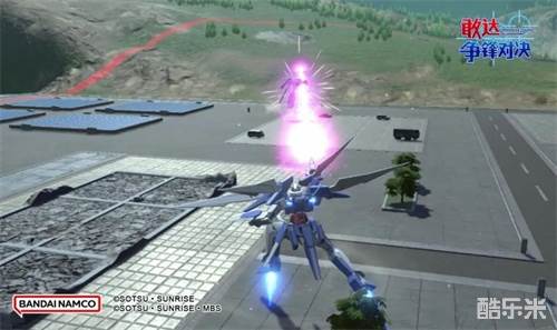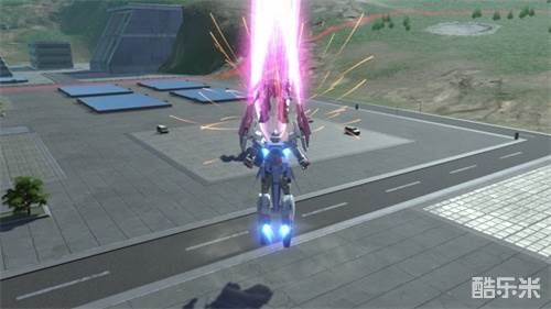 切换成双炮形态,之后向目标冲锋并挥舞大型光束剑连续斩击,命中后击飞目标。