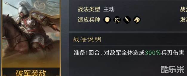 为了帮助大家能够在游戏中更好地搭配武将战法以及阵容,详细了解现在的强势战法效果是最关键的方面,破军袭敌就是其中之一,接下来一起来看三国谋定天下破军袭敌战法怎么搭配。在熟悉了效果之后,还需要选择合适的武将学习以及搭配出一套阵容,这样才能将优势发挥出来,也是策略乐趣所在。下面和酷乐米小编一起来看看吧