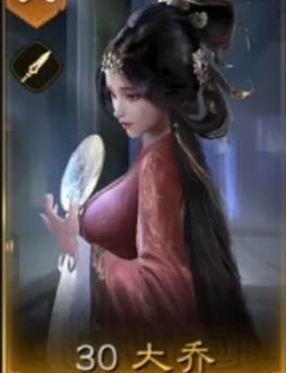 大乔战法国色、诛心、咏酒尝歌(顶配断敌粮道,针对诸葛、刘备体系的队伍)。兵书方面金相思(3敌军20%易伤,孙策带的都是群体战法非常需要大乔的易伤)+紫色敌勇(4%易伤)+紫先勇(己方武力最高武将5%伤害加成)。装备和马都是采用智力和统率向的,装备可用君临、灵光,马可以选掠水、游龙。武将加点走全智力加点。