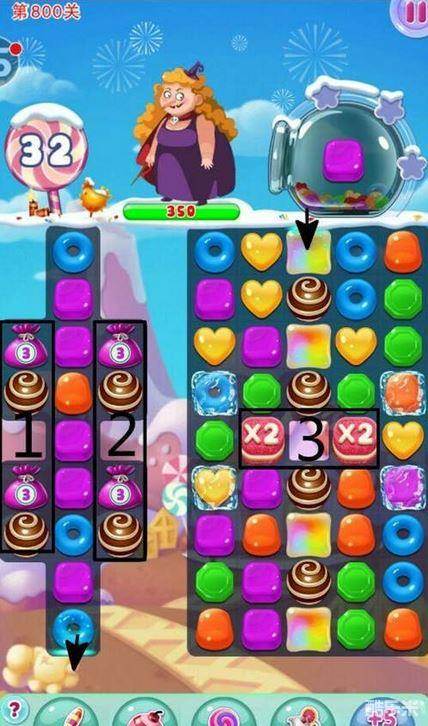 宾果消消乐800关主要目标是收集紫色糖果350个。本关出现了传送门,传送门主要为两个端口,可连接两个不同的平面,一个端口在游戏上端,一个在底端,上端的平面糖果被消除时会由底端的平面的糖果掉落。这一关的首要任务是收集紫色糖果,紫色糖果主要由糖果袋子所释放,建议在特效和夹心软糖一起消除效果会更好。下面我们一起来看一下宾果消消乐800关的攻略吧。