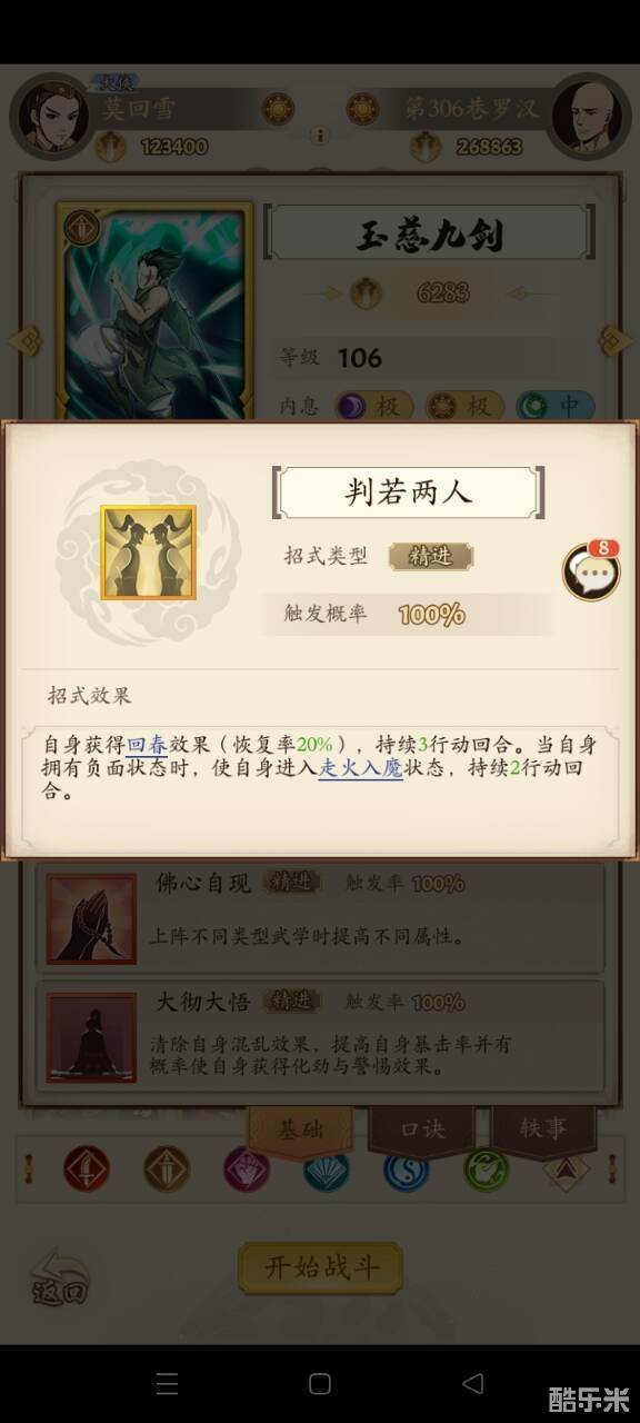 另外招式大彻大悟可以清除走火入魔带来的混乱debuff,如果没有可用其他精进或者后手招式代替(不用出手是为了避免吃对方后手招式)。