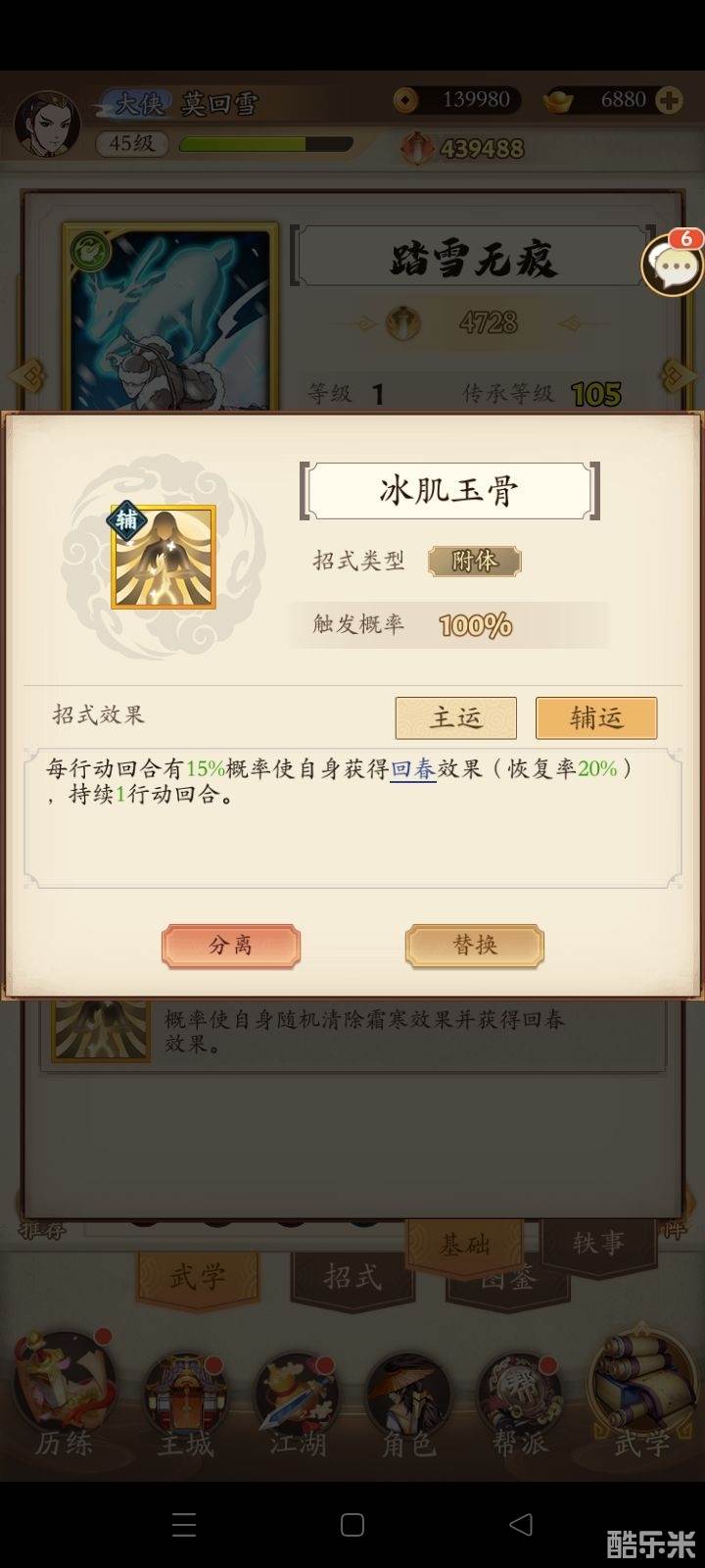 另外最好带上冰肌玉骨,回春招式被心惊的时候能有机会提供回春效果。