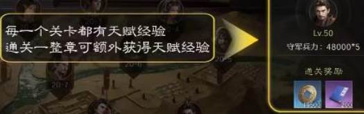 当玩家进入游戏的“合聚群雄”阶段后,会解锁远征模式。远征模式中的关卡奖励包括铜币、资源自选箱和打造材料箱,其中第一次通关远征关卡时还可以获得首通奖励,天赋经验就是其中的一项奖励。玩家可以优先挑战奖励资源丰富的关卡,这样才能快速获取天赋经验。