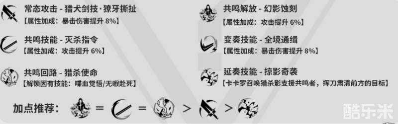 共鸣技能灭杀指令命中目标时,额外回复10点共鸣能量,每20秒可触发1次。