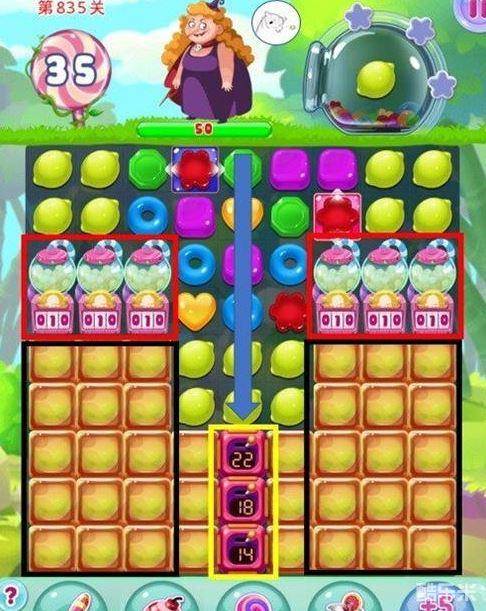 宾果消消乐835关主要任务是收集50个柠檬打倒女巫。本关收集目标为50个柠檬,台面上共有53个柠檬,所以不需要全部打完,但是由于大量被布丁覆盖的缘故感觉步数还是有些吃紧的,建议三星控的童鞋们开局阶段如果不能有效地做特效击打上布丁机,差不多就GG了。推荐加持屋子特效的情况下攻关。下面我们一起来看一下宾果消消乐835关的通关攻略吧。
