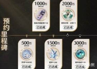 3、预约里程碑及社媒里程碑答成,20抽+自选四星武器+奖励若干。