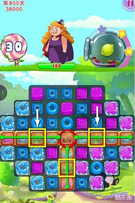由于次级糖果的合成会对已有的普通糖果发生作用,所以我们更多的操作建议是在次级糖果上,对于柠檬树的碰撞和柠檬果的生成,以及冰块的消除都是比较有利的。