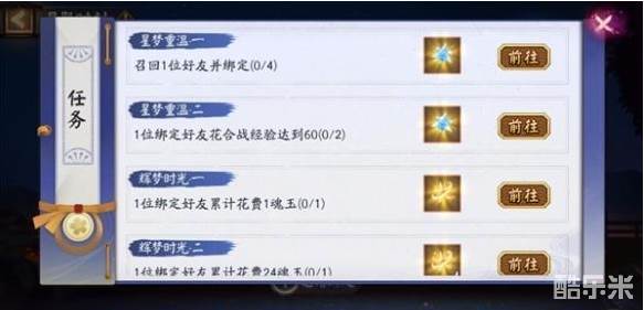 ※收集「重聚之星」达到指定进度时,可解锁获得勾玉、活动限定插画「故友花庭」、活动限定聊天挂件「繁星喵语」等活动奖励,回归好友还可额外获得花合战折扣券。