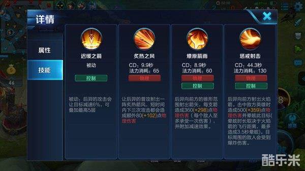 这项技能是后羿主要的输出技能,配合被动的减速使用,线上时,后羿能不断的利用这项技能消耗敌方英雄,让敌方进退两难。团战时,后羿可利用这项技能在己方坦克的保护下持续消耗,黏住敌方脆皮英雄,完成击杀。