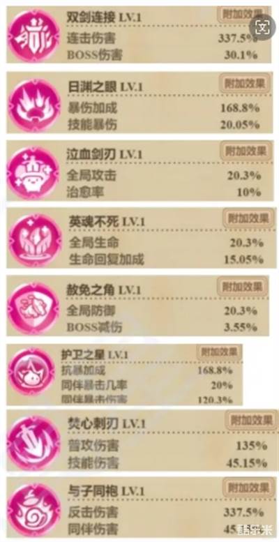 7、焚心刺刃(附加属性:普攻减伤、技能减伤、同伴暴击、全局连击、全局反击、全局普攻)