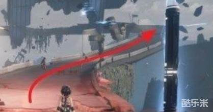 从传送锚点出发,沿着空中漂浮的公路往前走到下图箭头位置。