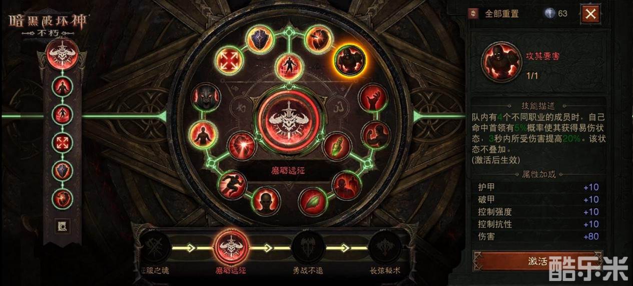 磨砺远征,团队作战攻克强敌!面对强大的敌人,磨砺远征提供的技能加成能为玩家,乃至整个团队提供十分可观的增益。激活了该阵盘的玩家不仅能为周围的队友提供减伤和暴击率加成、还能根据附近队友的数量提高生命球和药水的充能速度。此外,该阵盘内部分技能还能赋予自身格挡、免伤以及短时间内无敌的效果,让玩家们在面对任何强大的敌人时都能临危不乱,稳中求胜。
