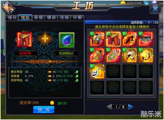 4、 精炼成功率为100%不变,但所需金币和精炼石为成倍增长。
