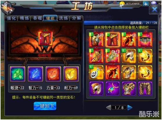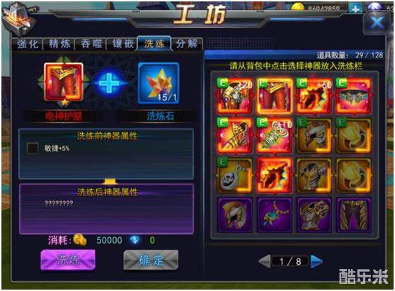 4、 洗练防具可以更换人物附加的属性,如物理防御百分比、耐力百分比、暴击等级百分比等。