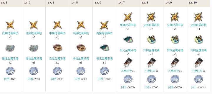 2、LV3:低频呓语声核x3、惰性金属液滴x3、贝币x2000