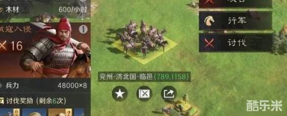 派遣部队讨贼城外大地图的贼寇,可使队内武将获得少量经验。