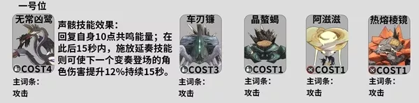 声骸搭配:无常凶鹭+车刃镰+晶鳌蝎+阿滋滋+热熔棱镜