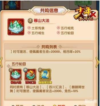 除了秒杀神技,当友方上阵武将佩戴指定法术时,还可激活“移山大法”的法术奥秘,为佩戴者提供大量的免伤加成。此外,玩家搭配指定五行法术,将开启法术共鸣,提升整体阵容的生命、攻击、免伤等属性。