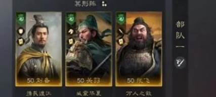 三人可触发桃园结义缘分,第三回合行动前驱散自身随机一种负面状态。刘备依靠自身战法再佩戴【青囊急救】可以保证部队续航能力,减少受到负面效果的影响,再依靠张飞先手施加“畏惧”状态,提高关羽主动战法发动率,使关羽能够更加稳定输出。