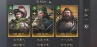 周仓的高统率和每回合稳定自我恢复兵力,让他十分适合位列前排抗伤,同时还可以给敌军施加“嘲讽”“畏惧”状态,让关羽在面对拥有“畏惧”状态的敌人时,增加自身的主动战法发动率,频繁触发主动战法打出高额伤害。张飞可以给敌军武将施加“畏惧”状态,来配合关羽的自带战法,让他打出更多的伤害。