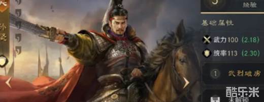 孙坚的自带战法在降低目标统率,造成兵刃伤害的同时,还可对目标施加震慑或额外降低其统率值,集伤害与控制为一体!武烈破虏,悍勇善战!