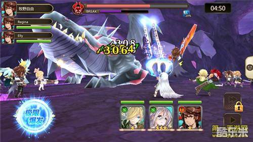 《神域召唤》游戏的战斗方式和刀塔传奇模式非常相似,也是自动战斗推图外加手动施放必杀技。但是画面表现力做得十分棒,同时多了一个“极限爆发”的设定。就是当玩家使用过大招之后积攒爆发槽,攒满后选择一个角色的爆发技能发动,可以看作“超绝必杀”!
