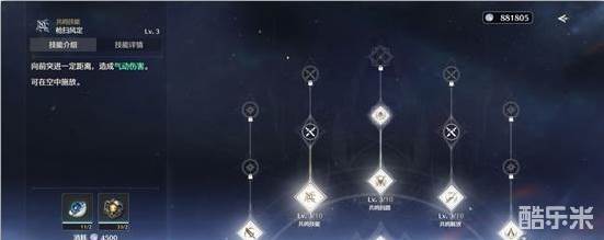 对前方目标进行突进,也可以在空中释放,敌人受到技能突进时会受到一段时间小僵直,同时向突进方向拉扯一段距离。