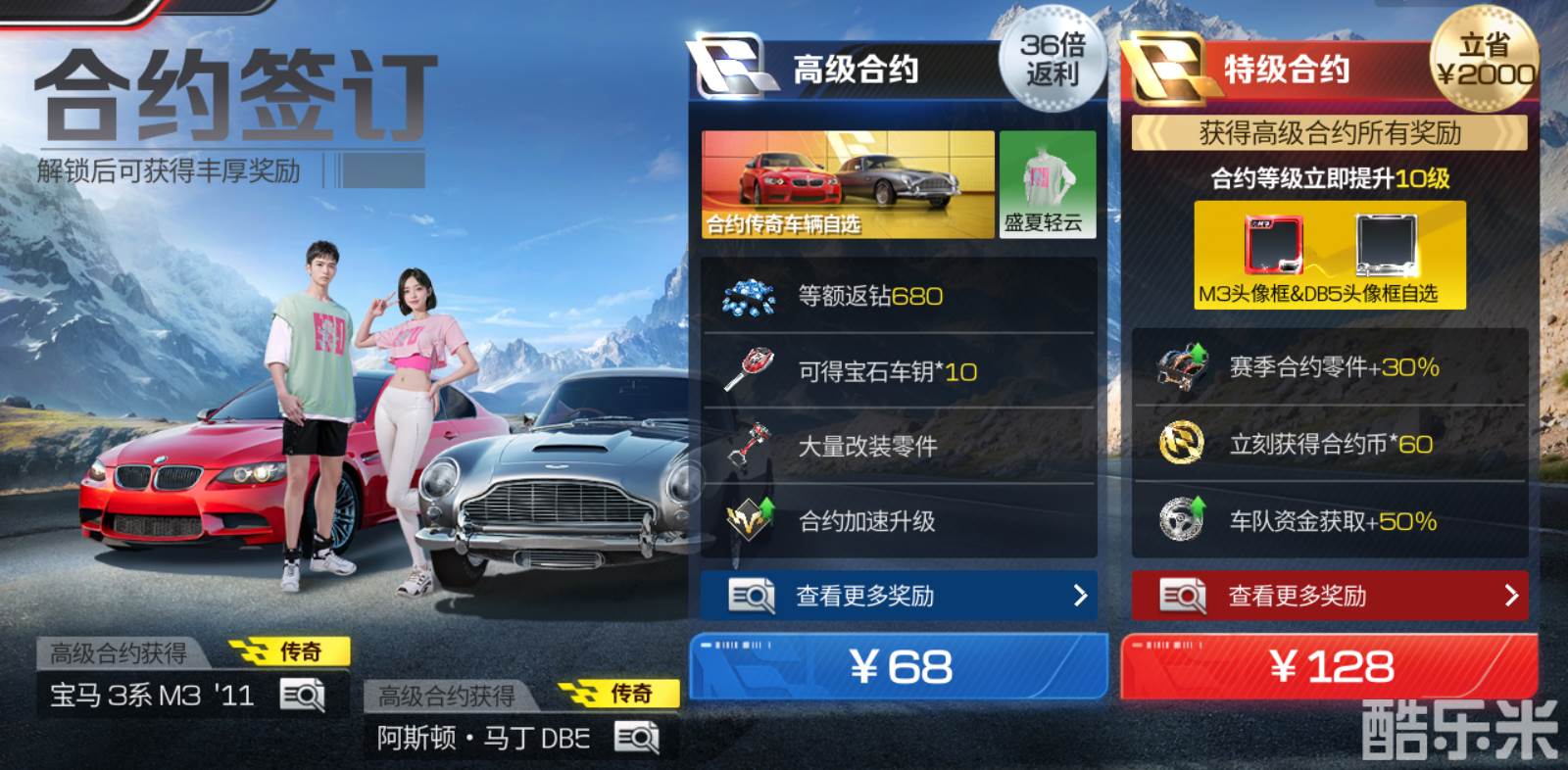 两辆传奇车辆均可通过使用合约币兑换ECU继续提升其等级。购买赛季合约还能够获得盛夏轻云系列时装、合约币、头像框、改装零件等专属合约奖励!