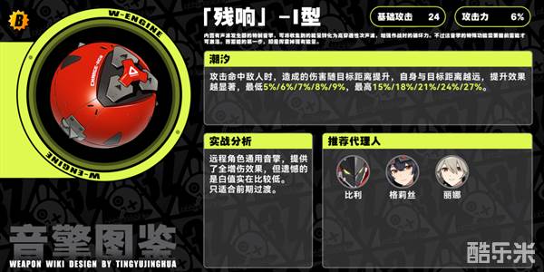 最后编辑于1年前绝区零残响Ⅰ型音擎怎么样?绝区零残响Ⅰ型音擎是一款根据目标距离提升伤害的进攻型B级音擎,下面和酷乐米小编一起来看看吧