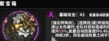 1、聚宝箱是妮可的专属武器,副词条能够为妮可提供能量回复效率加成。