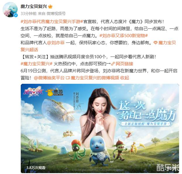 六月伊始,盛夏火爆的氛围初显。由上海鹿游研发的《魔力宝贝:复兴》正式官宣刘亦菲成为其品牌代言人,这是刘亦菲首次代言回合制手游,消息一公布便瞬间登上微博热搜,#刘亦菲代言魔力宝贝复兴手游#