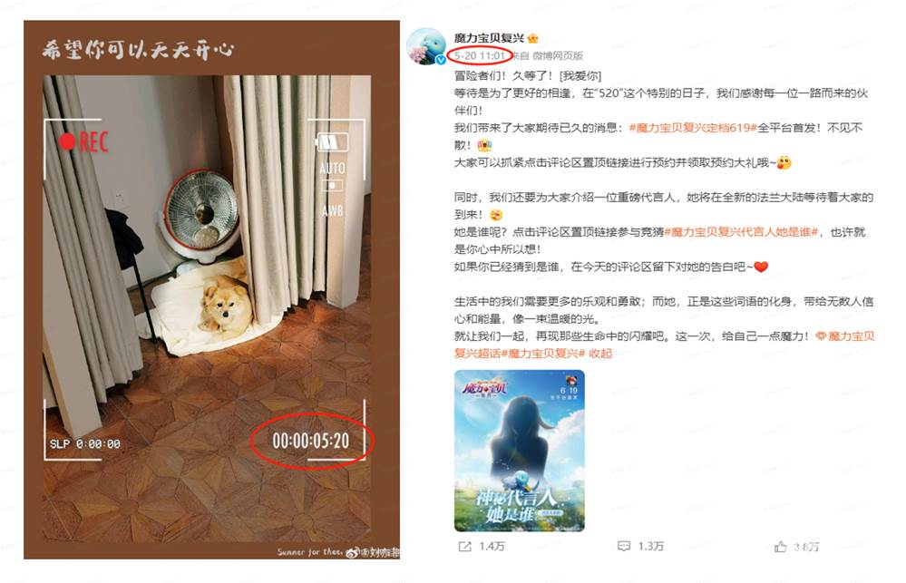 细心的网友还发现,刘亦菲发布工作照中的水印居然标注的“520”居然是《魔力宝贝:复兴》代言人悬念竞猜活动的日期,这种充满细节的“双向奔赴”,令人由衷感叹这样的“珠联璧合”。