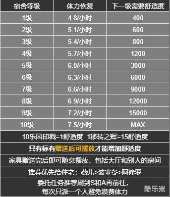 不买家具,优先开启第三个宿舍和第二个任务栏(开启宿舍之后需要点一下任务栏才会开启),之后送家具加舒适度,各升到3-4级。4-5级需要额外1800舒适度,比前四级加起来都高。