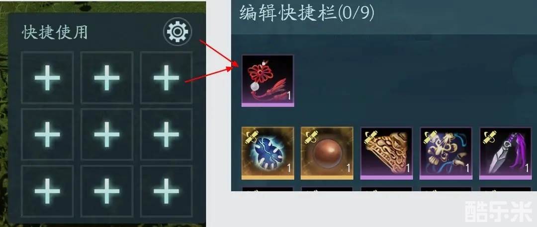 这里主要配置一些我们常用的道具,药品、食物、特效装备等等,方便我们快速使用。点击设置按钮可以一次全部配置快捷道具栏,点击加号按钮选择只配置当前位置的道具。