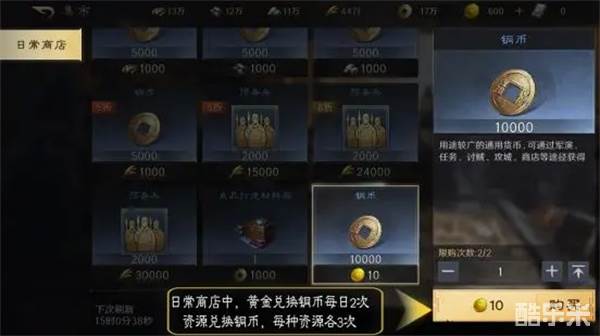 最后编辑于1年前《三国:谋定天下》游戏中有着许多的材料,其中铜币是一个重要的货币在日常中需要经常使用,下面和酷乐米小编一起来看看吧
