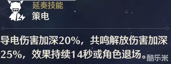 吟霖在定位上是副c,可以挂后合打伤害,增加队伍的DPS,同时延奏技能还能给25%的大招伤害加深,以及20%的导电伤害加深,