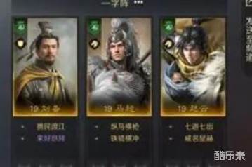 赵云承伤和弥补输出定位,依靠闪避强化伤害。马超携带战法提高自身会心几率强化输出。刘备可以增加全体统率提升防御能力,驱散负面能够提升稳定性。